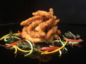 Tiras de pechuga de pollo cortadas a mano maceradas con limón, ajo y especias y cubiertas de un crujiente empanado. El plato ideal para servir en comidas informales, un plato perfecto para niños y de fácil regeneración.